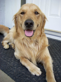 This weekend Randy's puppy raiser came to visit the litter all the way from North Carolina along with Randy's breeder caretaker. It was a lot of fun getting together with them and playing with the puppies. They are all so sweet and light in color, they get that from Randy. McKenzie (blue collar) is especially light and she's big! She got that from her daddy! Chandra is a small girl weighing in at around 50 lbs, I Randy is closer to 85 lbs, but he is tall and lean.
